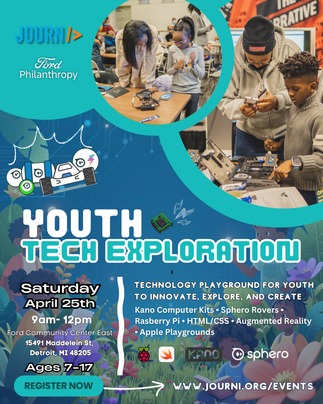Join us for an exciting morning of hands-on tech exploration for youth and adults, sponsored by JOURNi and Ford Philanthropy.