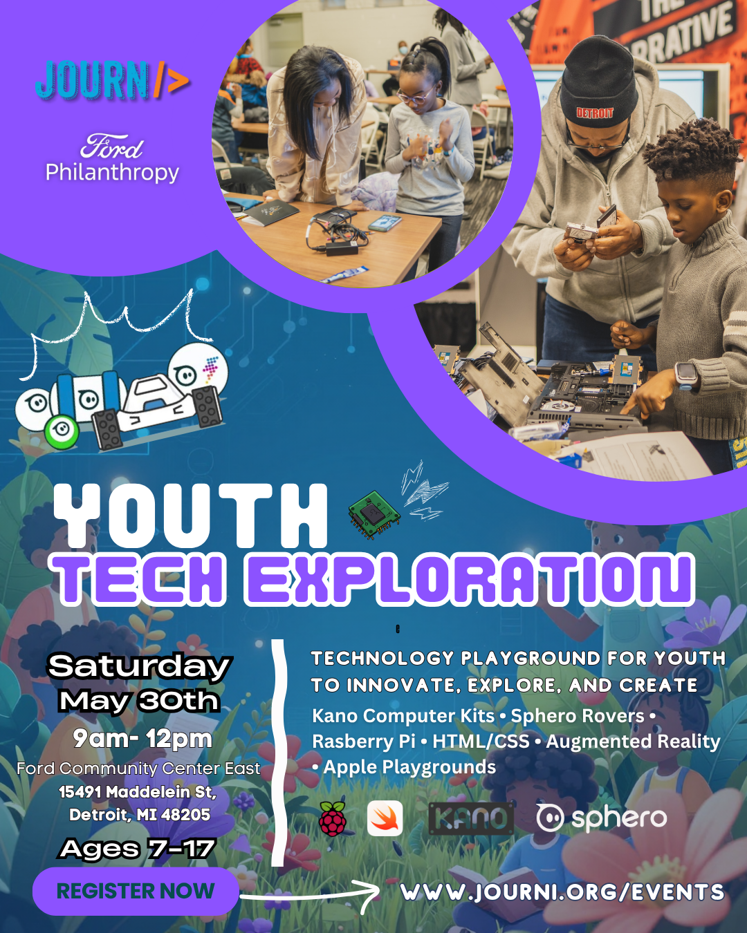 Join us for an exciting morning of hands-on tech exploration for youth and adults, sponsored by JOURNi and Ford Philanthropy.