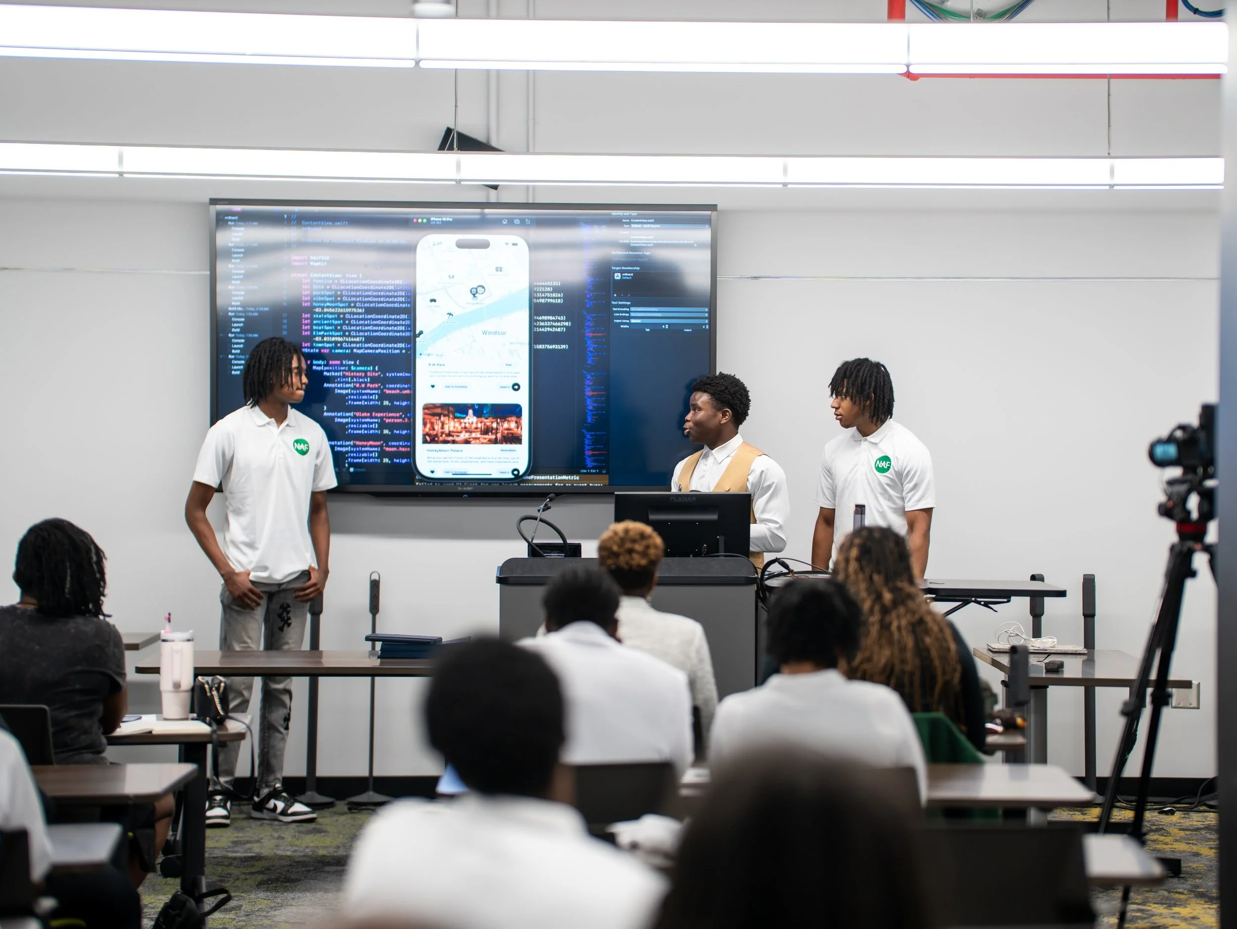 The program culminates in a final pitch presentation, where students showcase their apps, ideas, and business models.
